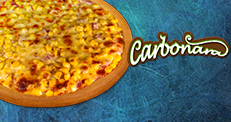pizzaszósz, sonka, bacon, kolbász, hagyma, kukorica, mozzarella (30cm)2+1 Carbonara
