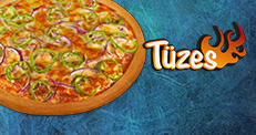 pizzaszósz, sonka, szalámi, csemege uborka, füstölt sajt, mozzarella (30cm)2+1 Tüzes