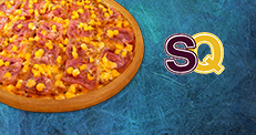 pizzaszósz, bacon, bab, kukorica, sajt (26cm)2+1 SQ