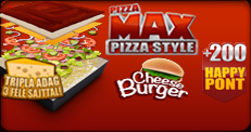 square shaped filled pizza with tomato sauce, triple-cheese of three cheese blend, pepperoni, sausage, onions, sweetcorn, green chili pepper and salted pretzel topPizza MAX - CheeseBURGER